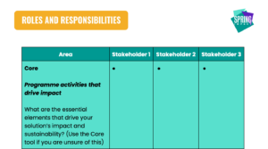 On your scaling journey, you will likely have to work with many different stakeholders to deliver successful outcomes. This might include delivery partners, funders, referral partners, and others. With so many stakeholders pulling together, you must define clearly the roles and responsibilities that each will be expected to fulfil in order to: