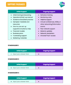 The question left to answer is how will you ensure those partners have the skills and knowledge they need to deliver on those roles and responsibilities from the outset and on an ongoing basis? A support package comprises the training, resources, systems and tools you provide partners to help them deliver impact as part of your scaling model. It is the primary way that quality delivery of a solution is guaranteed and can also convince partners of the *value of your offering.